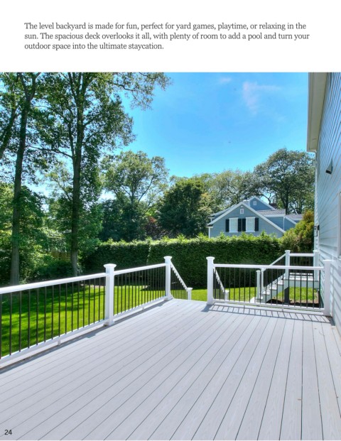The level backyard is made for fun, perfect for yard games, playtime, or relaxing in the sun. The spacious deck overlooks it all, with plenty of room to add a pool and turn your outdoor space into the ultimate staycation. 24