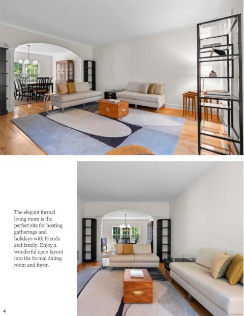The elegant formal living room is the perfect site for hosting gatherings and holidays with friends and family. Enjoy a wonderful open layout into the formal dining room and foyer. 4