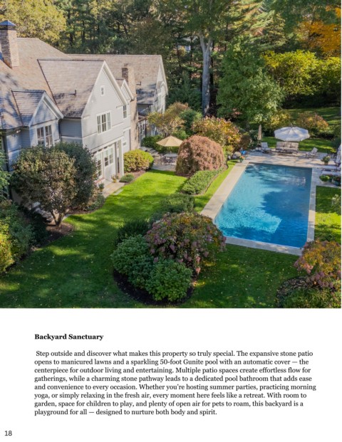 opens to manicured lawns and a sparkling 50-foot Gunite pool with an automatic cover — the