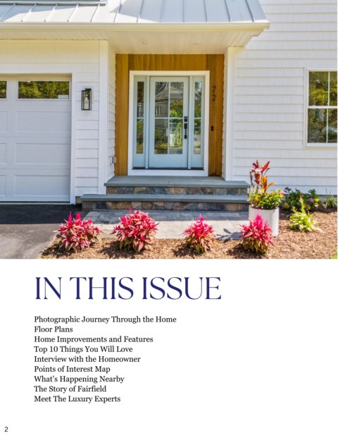 IN THIS ISSUE Photographic Journey Through the Home Floor Plans Home Improvements and Features Top 10 Things You Will Love Interview with the Homeowner Points of Interest Map What’s Happening Nearby The Story of Fairfield Meet The Luxury Experts 2