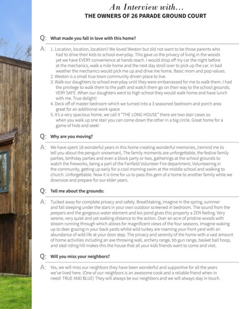 A:   Yes, we will miss our neighbors they have been wonderful and supportive for all the years