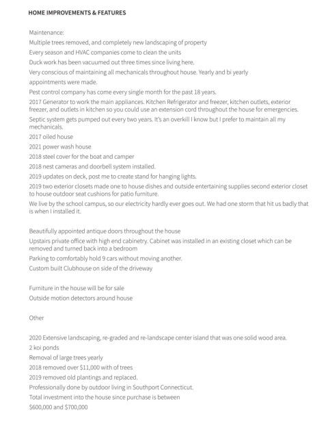 Very conscious of maintaining all mechanicals throughout house. Yearly and bi yearly