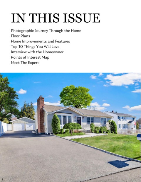 IN THIS ISSUE Photographic Journey Through the Home Floor Plans Home Improvements and Features Top 10 Things You Will Love Interview with the Homeowner Points of Interest Map Meet The Expert 2