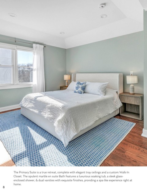 The Primary Suite is a true retreat, complete with elegant tray ceilings and a custom Walk-In