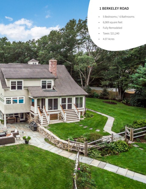 1 BERKELEY ROAD • 5 Bedrooms / 6 Bathrooms • 6,069 square feet • Fully Remodeled • Taxes: $21,240 • 4.07 Acres