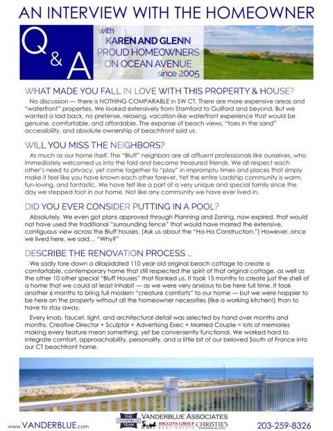 “waterfront” properties. We looked extensively from Stamford to Guilford and beyond. But we