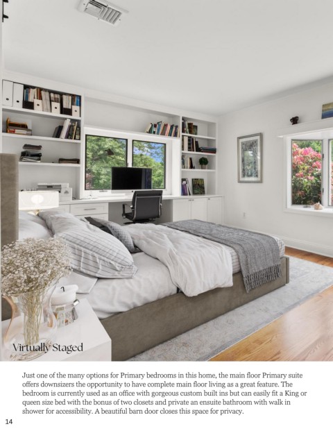 bedroom is currently used as an office with gorgeous custom built ins but can easily fit a King or
