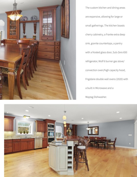 The custom kitchen and dining areas