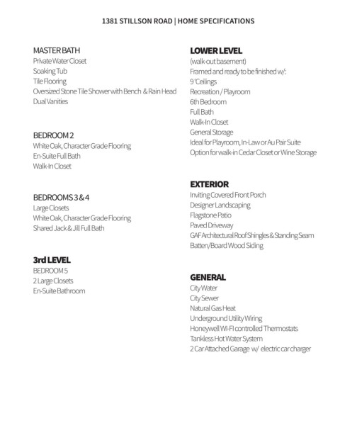 1381 STILLSON ROAD | HOME SPECIFICATIONS