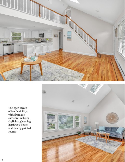 The open layout offers flexibility, with dramatic cathedral ceilings, skylights, gleaming hardwood floors and freshly painted rooms. 6