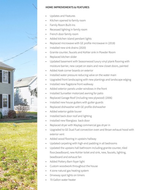 • Upgraded to GE Dual Fuel convection oven and Broan exhaust hood with
