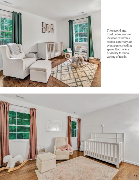 The second and third bedrooms are ideal for children’s rooms, a nursery, or even a quiet reading space. Each offers flexibility to suit a variety of needs. 13