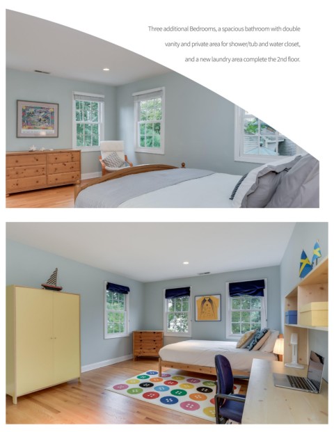 Three additional Bedrooms, a spacious bathroom with double vanity and private area for shower/tub and water closet, and a new laundry area complete the 2nd floor.