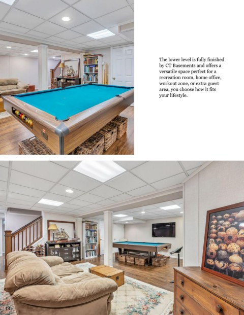 The lower level is fully finished by CT Basements and offers a versatile space perfect for a recreation room, home office, workout zone, or extra guest area, you choose how it fits your lifestyle. 14