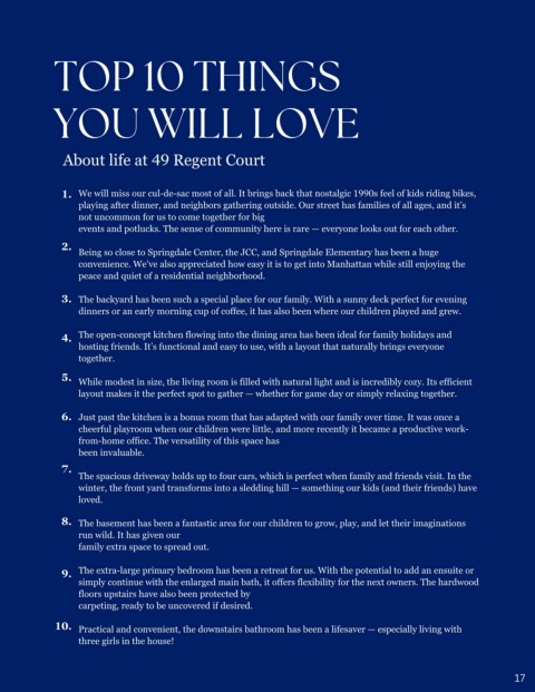 1.  We will miss our cul-de-sac most of all. It brings back that nostalgic 1990s feel of kids riding bikes,