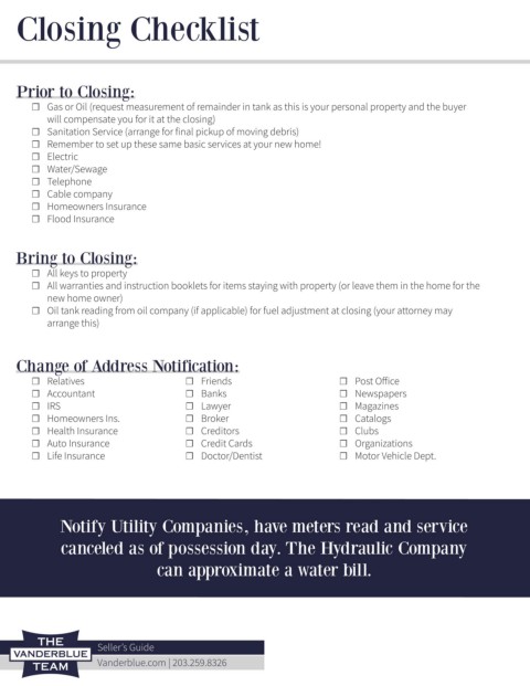 ☐ Oil tank reading from oil company (if applicable) for fuel adjustment at closing (your attorney may