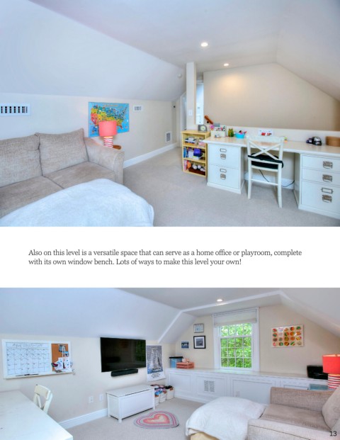 Also on this level is a versatile space that can serve as a home office or playroom, complete with its own window bench. Lots of ways to make this level your own! 13