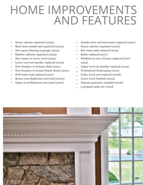 • New fireplace in Primary Bath (2021) • Upper Level air handler replaced (2015)
