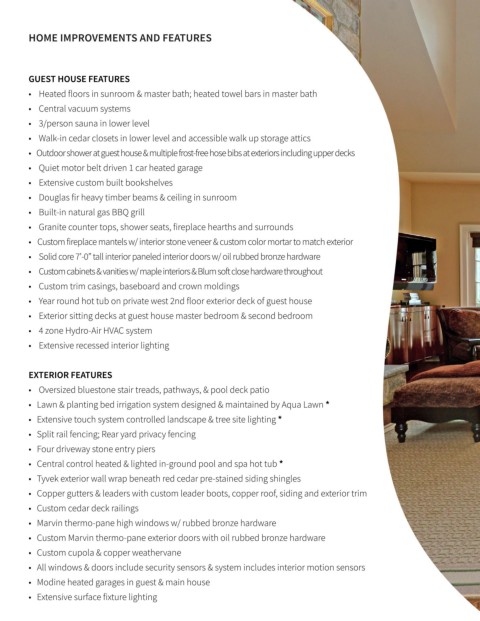 • Outdoor shower at guest house & multiple frost-free hose bibs at exteriors including upper decks