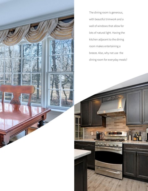 The dining room is generous, with beautiful trimwork and a wall of windows that allow for lots of natural light. Having the kitchen adjacent to the dining room makes entertaining a breeze. Also, why not use the dining room for everyday meals?