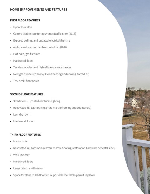 • Space for stairs to 4th floor future possible roof deck (permit in place)