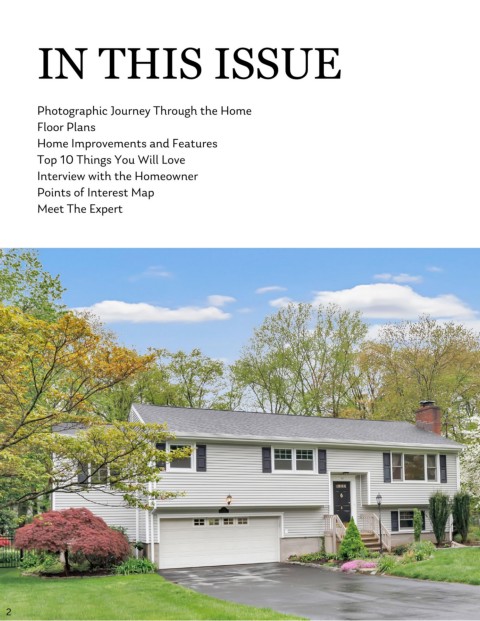 IN THIS ISSUE Photographic Journey Through the Home Floor Plans Home Improvements and Features Top 10 Things You Will Love Interview with the Homeowner Points of Interest Map Meet The Expert 2