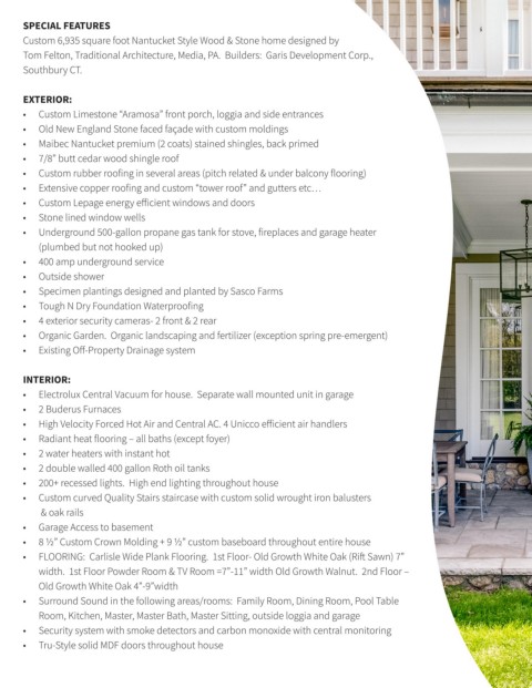 • Extensive copper roofing and custom “tower roof” and gutters etc…