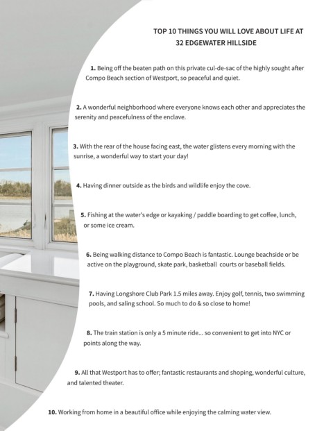 9. All that Westport has to offer; fantastic restaurants and shoping, wonderful culture,