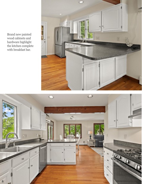 Brand new painted wood cabinets and hardware highlight the kitchen complete with breakfast bar. 6