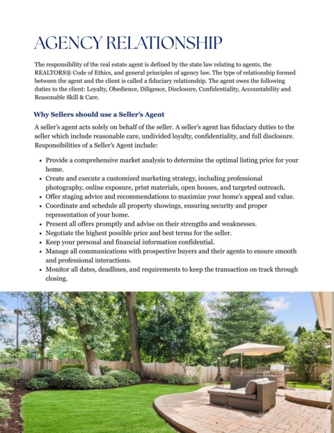 between the agent and the client is called a fiduciary relationship. The agent owes the following