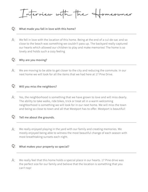 A: We really feel that this home holds a special place in our hearts. 17 Pine drive was