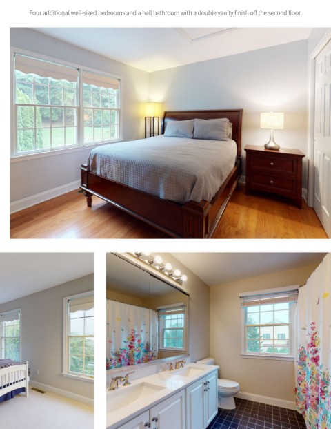 Four additional well-sized bedrooms and a hall bathroom with a double vanity finish off the second floor.