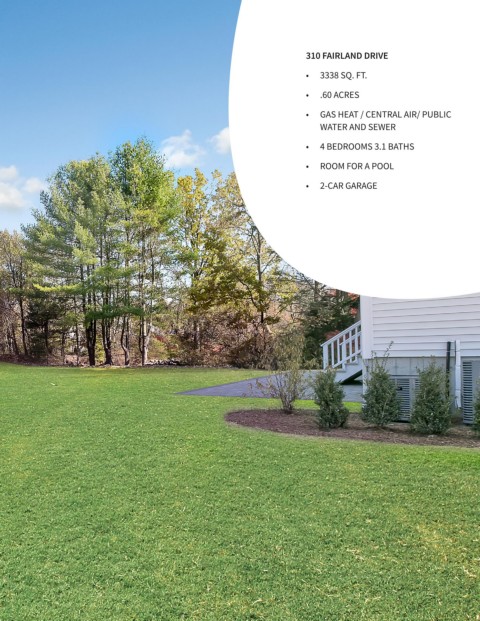 the illustrious Fairfield school system to gain acceptance at many of the most elite   •  2-CAR GARAGE