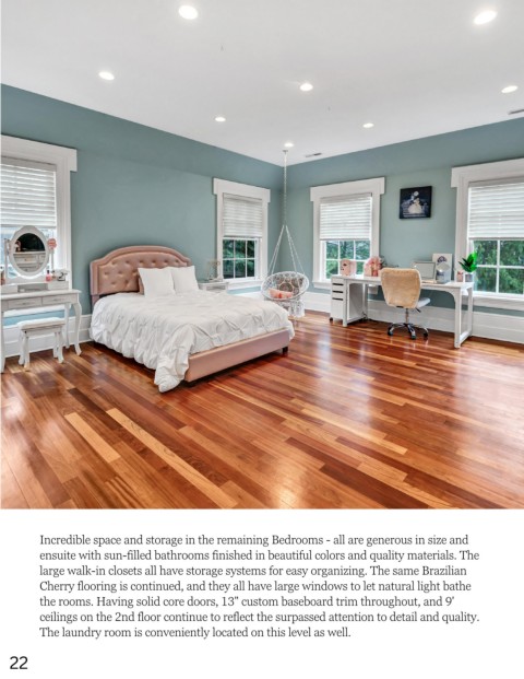 Cherry flooring is continued, and they all have large windows to let natural light bathe