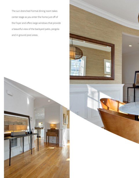 The sun drenched Formal dining room takes center stage as you enter the home just off of the Foyer and offers large windows that provide a beautiful view of the backyard patio, pergola and in ground pool areas.