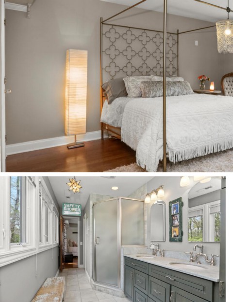 Two spacious bedrooms share a large Jack and Jill bathroom with a walk-in shower and separate water closet.
