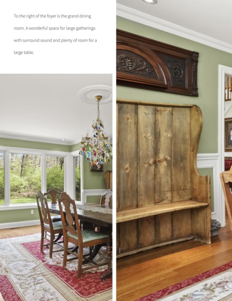 To the right of the foyer is the grand dining room. A wonderful space for large gatherings with surround sound and plenty of room for a large table.