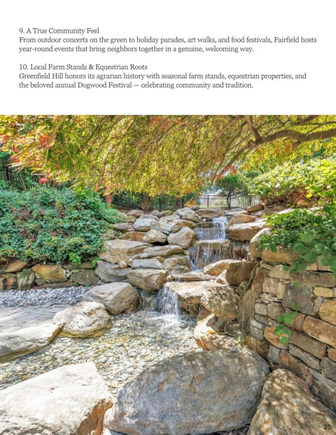 Greenfield Hill honors its agrarian history with seasonal farm stands, equestrian properties, and