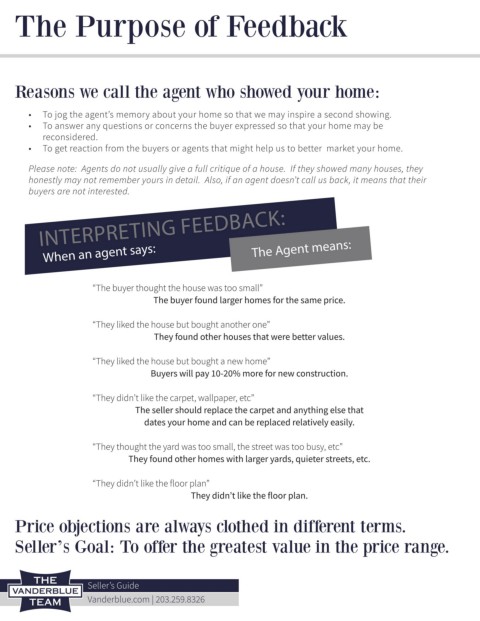 • To get reaction from the buyers or agents that might help us to better market your home.