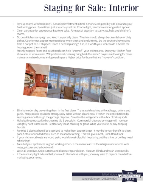 • Clean up clutter for appearance & safety’s sake. Pay special attention to stairways, halls and children’s