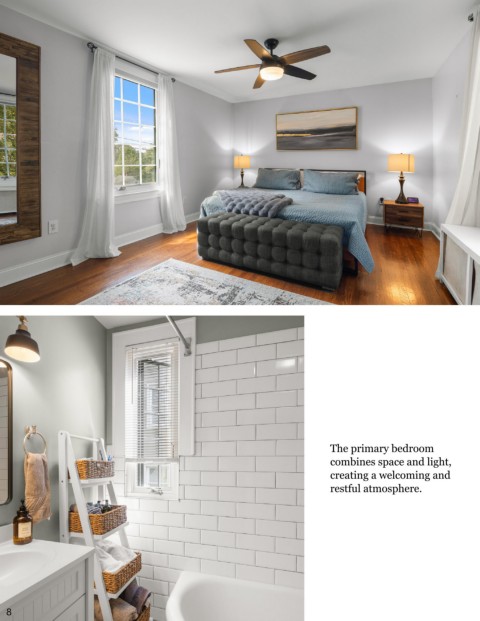 The primary bedroom combines space and light, creating a welcoming and restful atmosphere. 8