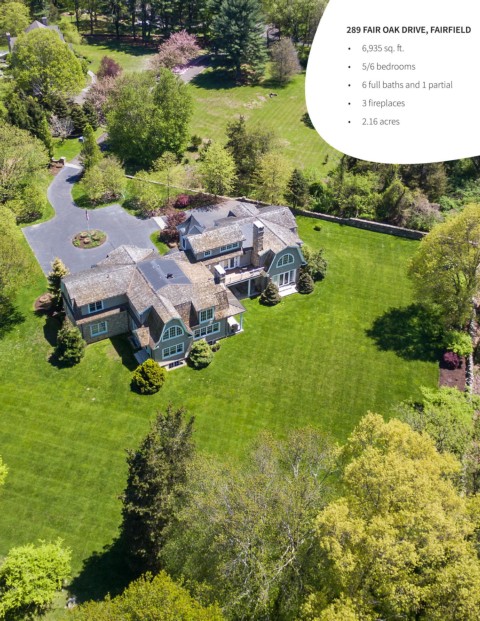 289 FAIR OAK DRIVE, FAIRFIELD • 6,935 sq. ft. • 5/6 bedrooms • 6 full baths and 1 partial • 3 fireplaces • 2.16 acres