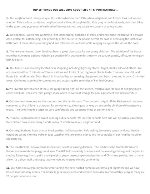 TOP 10 THINGS YOU WILL LOVE ABOUT LIFE AT 47 PURITAN ROAD...