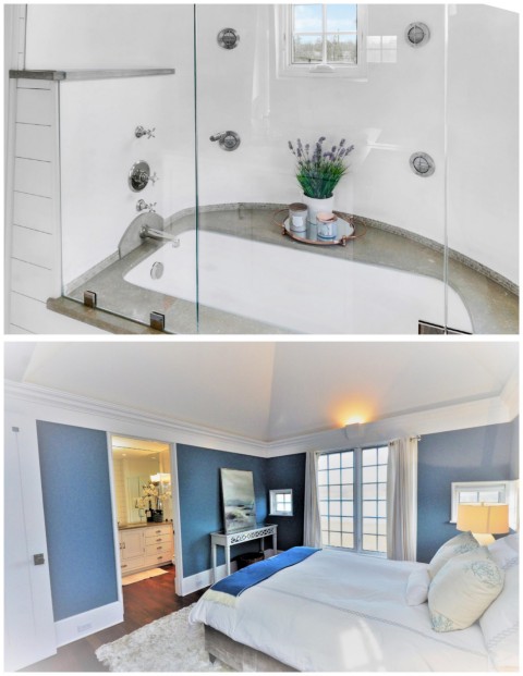 on the second level are all sun-drenched and well sized. New hardwood flooring, recessed with wall sconce lighting, custom crown molding and large windows with beautiful water