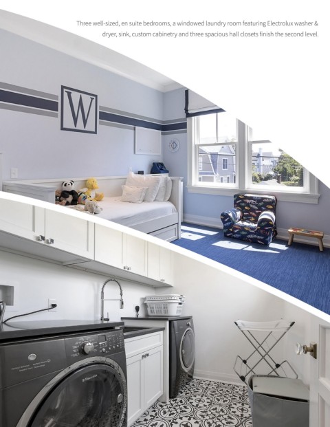 Three well-sized, en suite bedrooms, a windowed laundry room featuring Electrolux washer & dryer, sink, custom cabinetry and three spacious hall closets finish the second level.