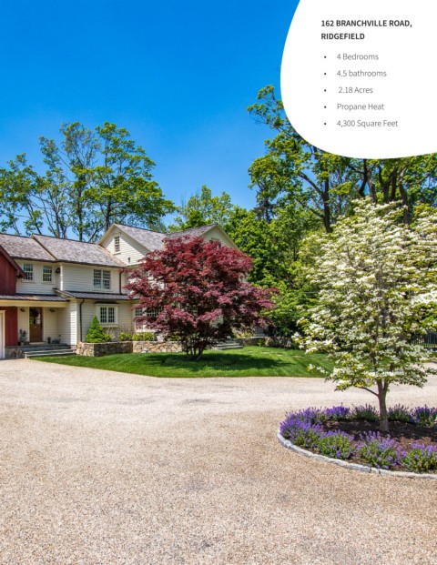 162 BRANCHVILLE ROAD, RIDGEFIELD • 4 Bedrooms • 4.5 bathrooms • 2.18 Acres • Propane Heat • 4,300 Square Feet