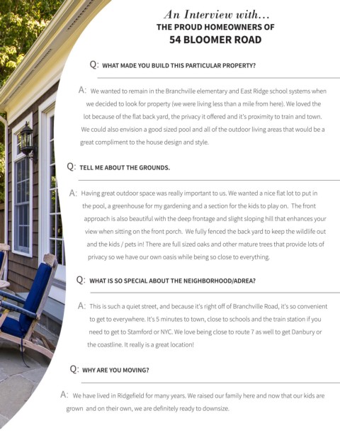 A: We have lived in Ridgefield for many years. We raised our family here and now that our kids are