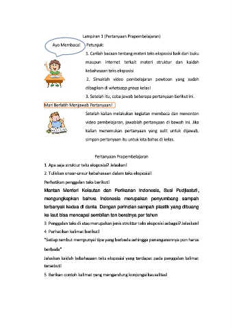 Lampiran 1 (Pertanyaan Prapembelajaran)
