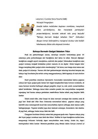 “Bahaya Bermain Gadget Sebelum Tidur”. Diskusikan