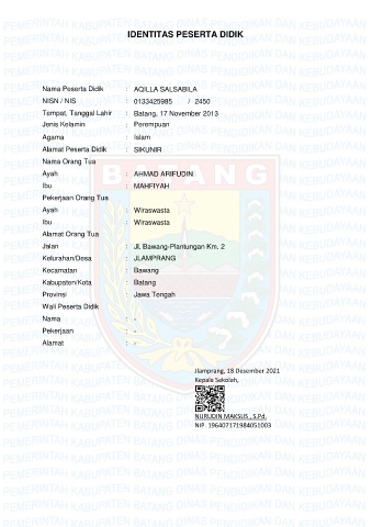 NISN / NIS : 0133425985 / 2450